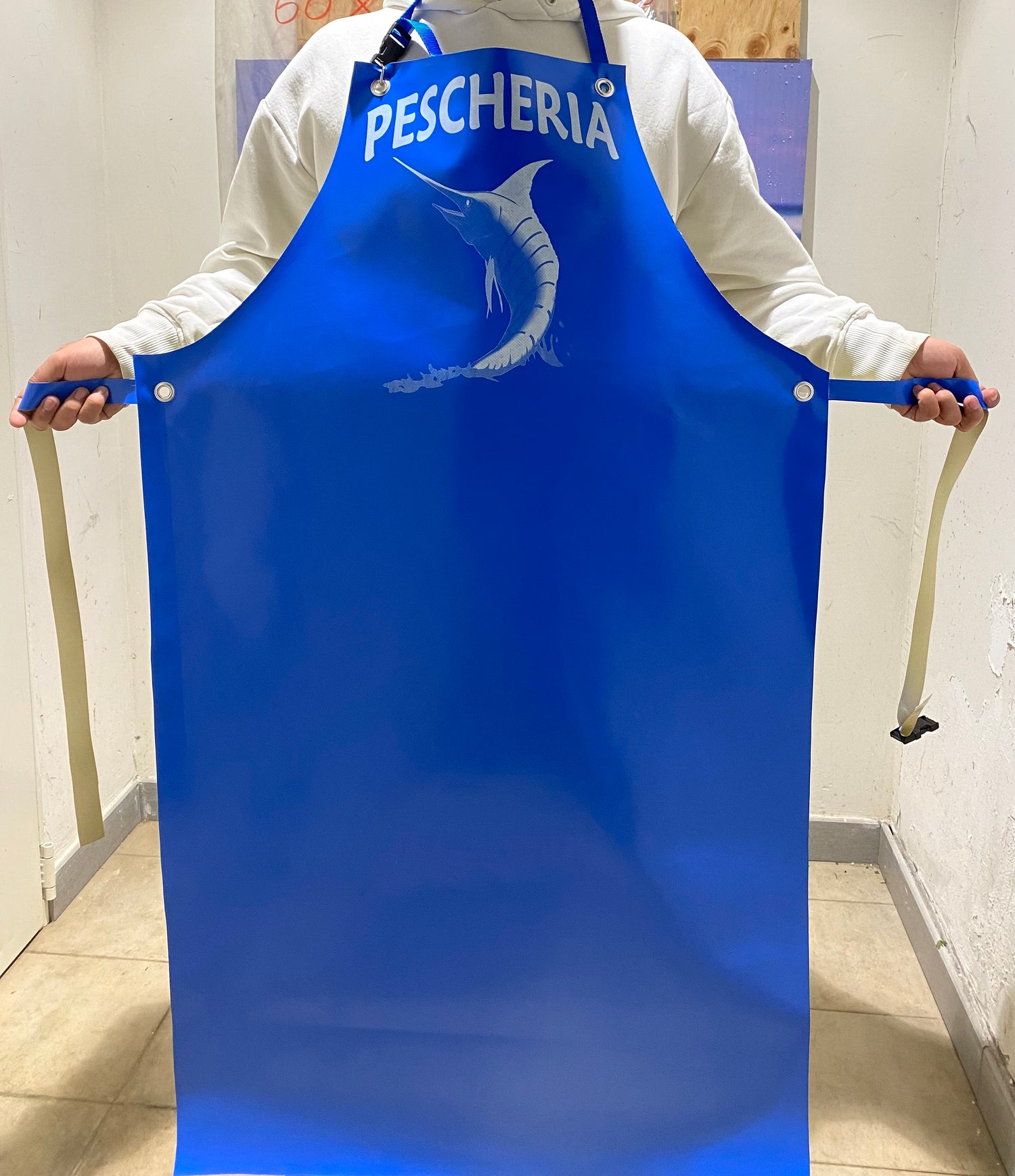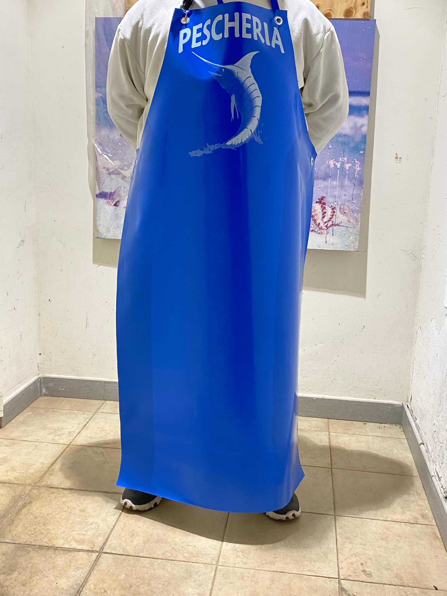 Grembiule in pvc impermeabile  con scritta pescheria taglia unica disponibile solo colore azzurro a soli €9.99